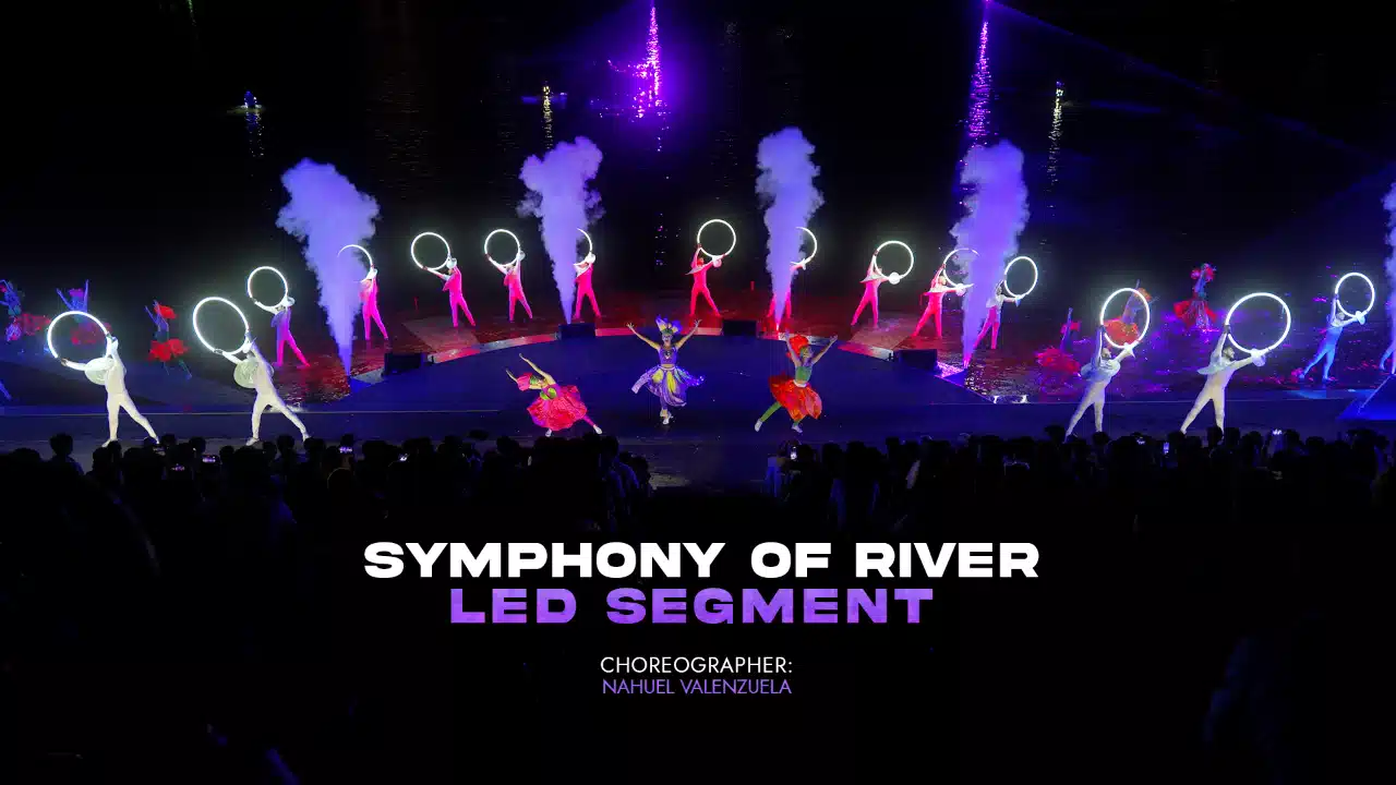 En 2024 se desarrolló el segmento coreográfico en LED de Symphony of River, presentado en Asia Park y producido para la compañía internacional Sun World Ba Na Hills (Vietnam). La propuesta escénica integró de manera dinámica el movimiento con los elementos de agua y luz, creando una pieza de alto impacto visual diseñada especialmente para un evento de gran escala.